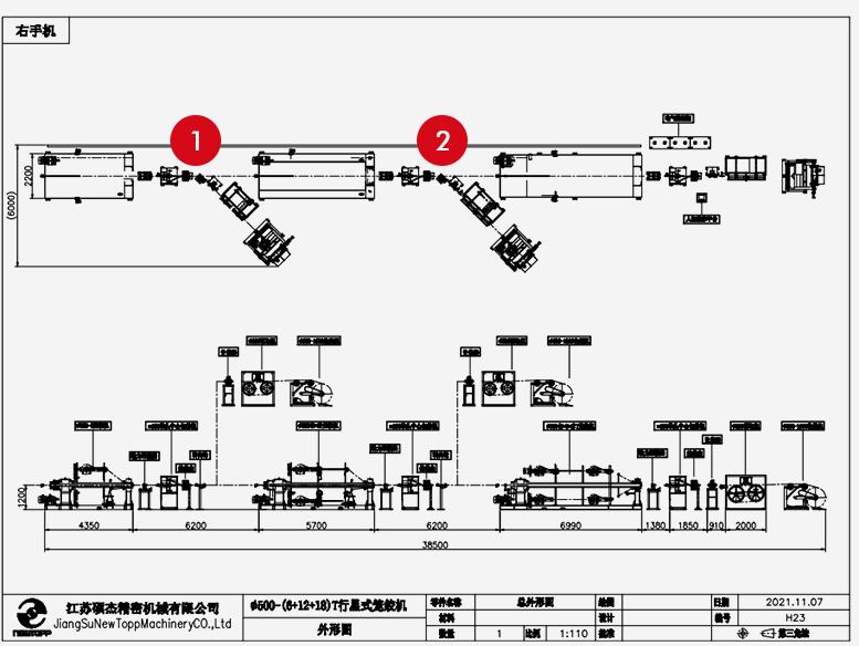 | فرآیند اکستروژن توصیه می شود: اکسترودر سیم هسته 60 میلی متری 25 میلی متری | فرآیند مونتاژ 1. چرخش تکی توصیه می شود: 1000 میلی متر کنسول تک تاب 2. کابل کشی توصیه می شود: دستگاه بندکشی قفس 400-500 میلی متر | فرآیند اکستروژن غلاف بیرونی توصیه می شود: اکسترودر غلاف بیرونی 70 میلی متر |
